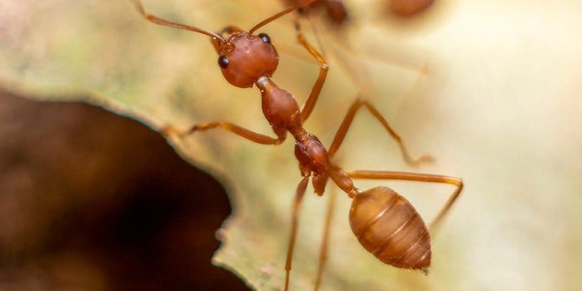 - Fire Ants: These ants are invasive species. They have an oval segmented body with a dark reddish-brown color, six legs, and antennae. Measuring about 1/8 to 3/8 inches long, they are aggressive and have been described as mean and a bully. They often build nests in parks, gardens, and lawns.